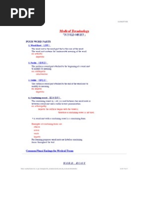 First prefixes and suffixes most of which are derived from ancient Greek or classical Latin have a droppable -o-. Medical terminology is composed of a prefix root word and suffix. Start studying Medical Terminology - Basic Elements of a Medical Word.